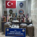 Edirne’de polis ekiplerince bir depoya düzenlenen operasyonda, yılbaşı döneminde satılması planlanan kaçak ürünler ve uyuşturucu ele geçirilirken, 2 şüpheli gözaltına alındı.