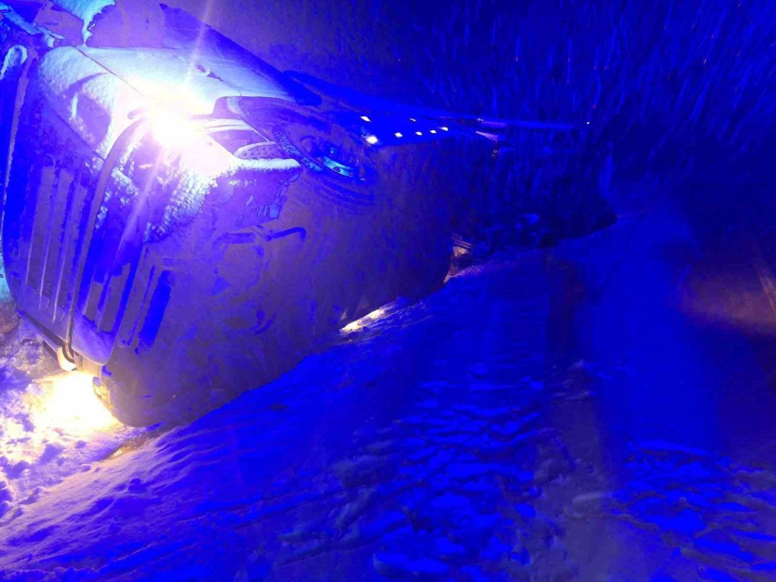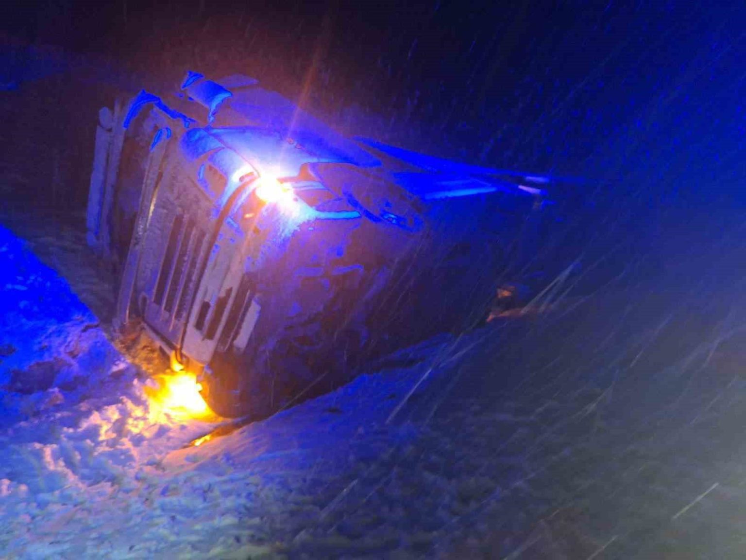 Yoğun kar yağışta kayan tır devrildi, sürücü yaralandı