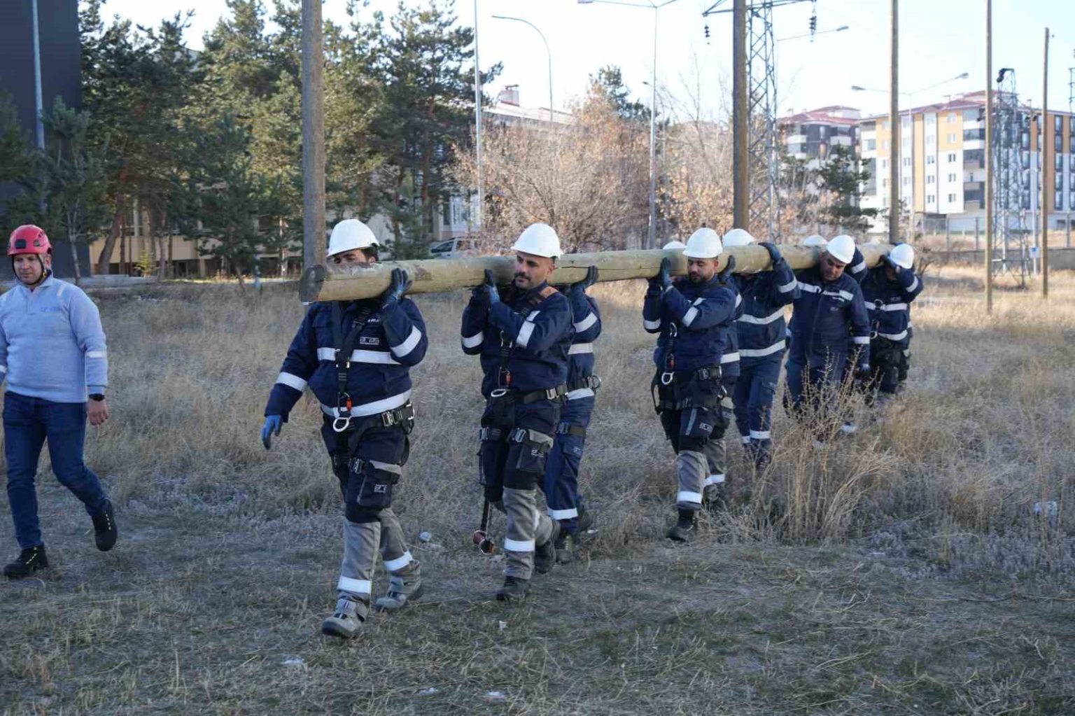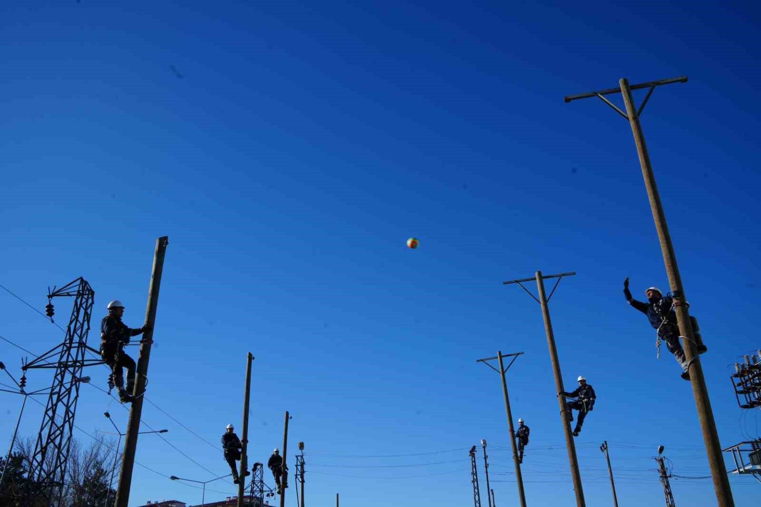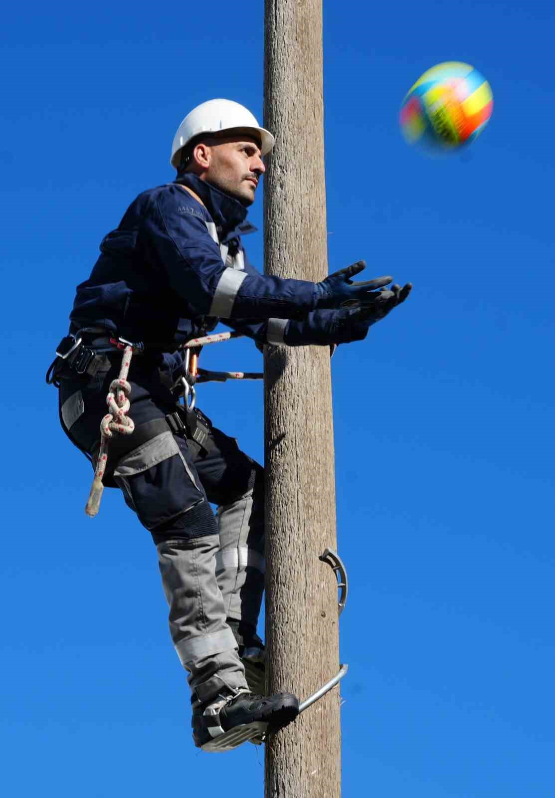 Doğu Anadolu Bölgesi’nde elektrik dağıtım hizmeti veren Aras EDAŞ, saha çalışanlarını zorlu iklim ve coğrafi şartlarına hazırlıyor. Personel sabah antrenmanlarında koşuyor, direk taşıyor ve elektrik direkleri üzerinde voleybol oynuyor.