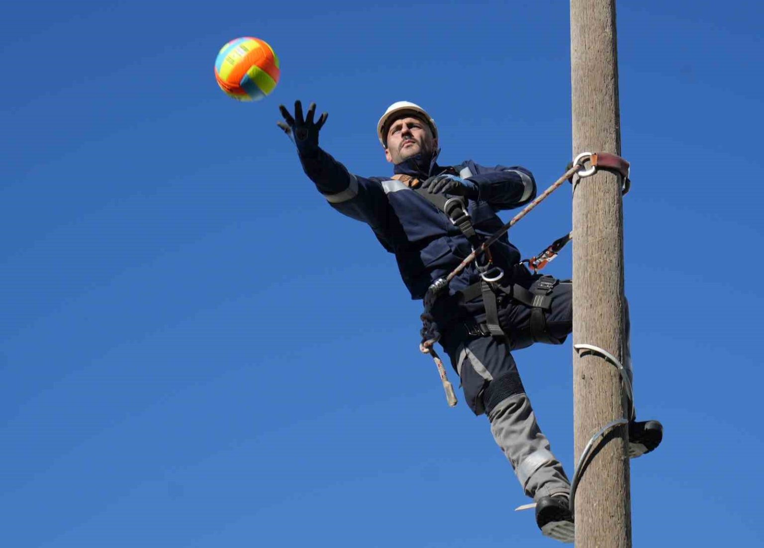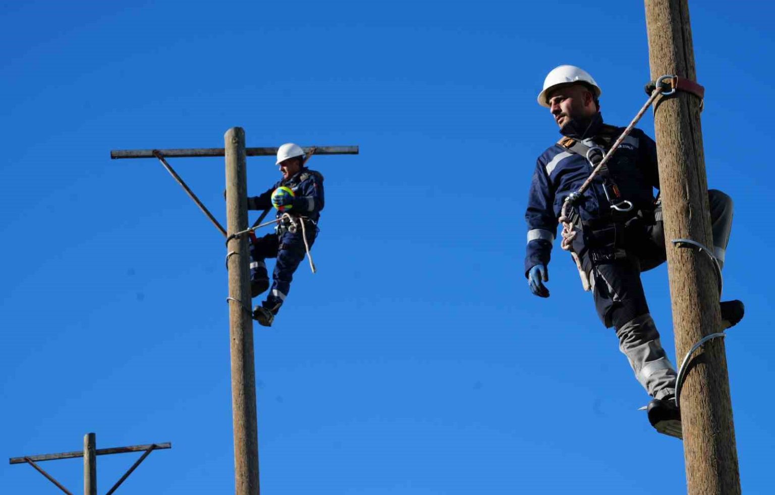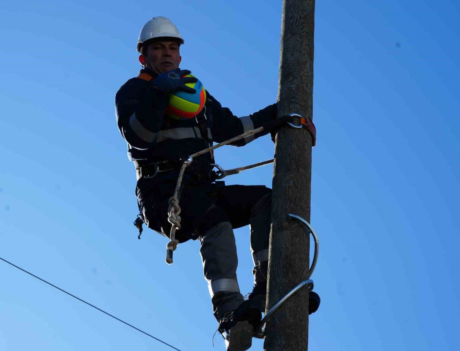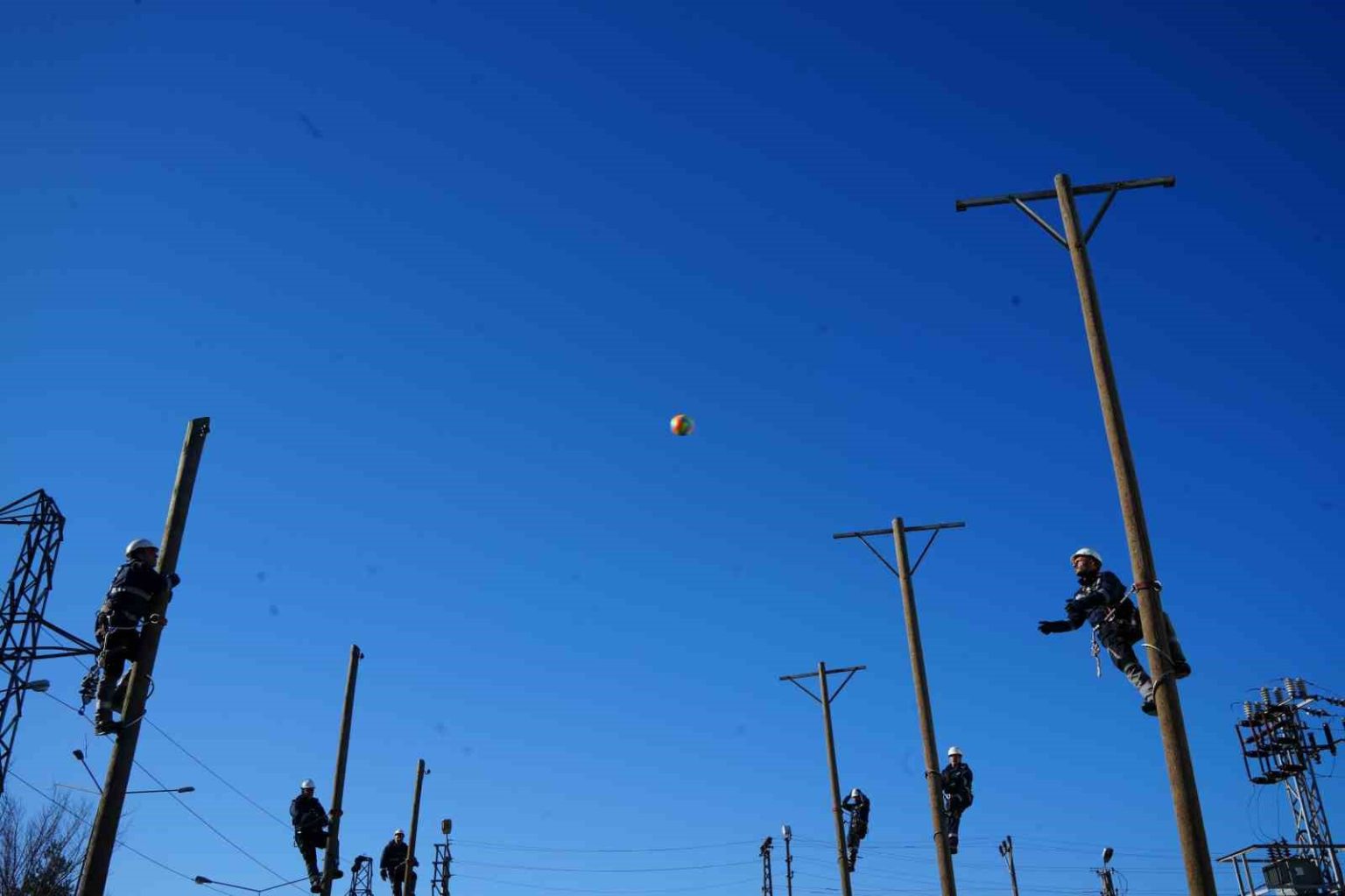 Doğu Anadolu Bölgesi’nde elektrik dağıtım hizmeti veren Aras EDAŞ, saha çalışanlarını zorlu iklim ve coğrafi şartlarına hazırlıyor. Personel sabah antrenmanlarında koşuyor, direk taşıyor ve elektrik direkleri üzerinde voleybol oynuyor.