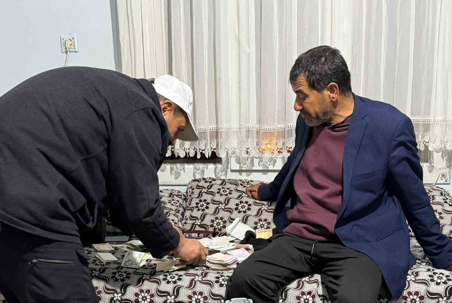 Engelli vatandaşın geldiği yolları takip edip çantayı bulduğunu ve teslim ettiğini söyleyen Mehmet Tıraş, “Dün akşam saatlerinde yolda giderken Emin kardeşimize rastladım. Tekerlekli sandalye ile giderken ağladığını gördüm. Niye ağladığını sorduğumda, ’çantayı kaybettim’ dedi. İçinde para olduğunu söyledi. Ben de nereden geldiğini sordum. Bir yer gösterdi. Geldiği yöne doğru gittim, çantayı orada buldum. İçinin de para dolu olduğunu gördüm. Kendisinin yanına vardım, arabama bindirdim. Tekerlekli sandalyesiyle birlikte evine götürdüm. Evinde de eşyasını teslim ettim. Eşi de bize teşekkür etti” diye konuştu.