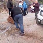 Yola düşen kayaları iple cipe bağlayıp çektiler