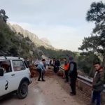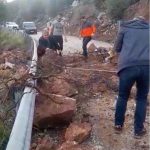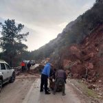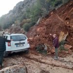 Antalya’da heyelan nedeniyle yola düşen kayaları sürücüler cip yardımıyla iple çekerek kapanan yolu açtı.