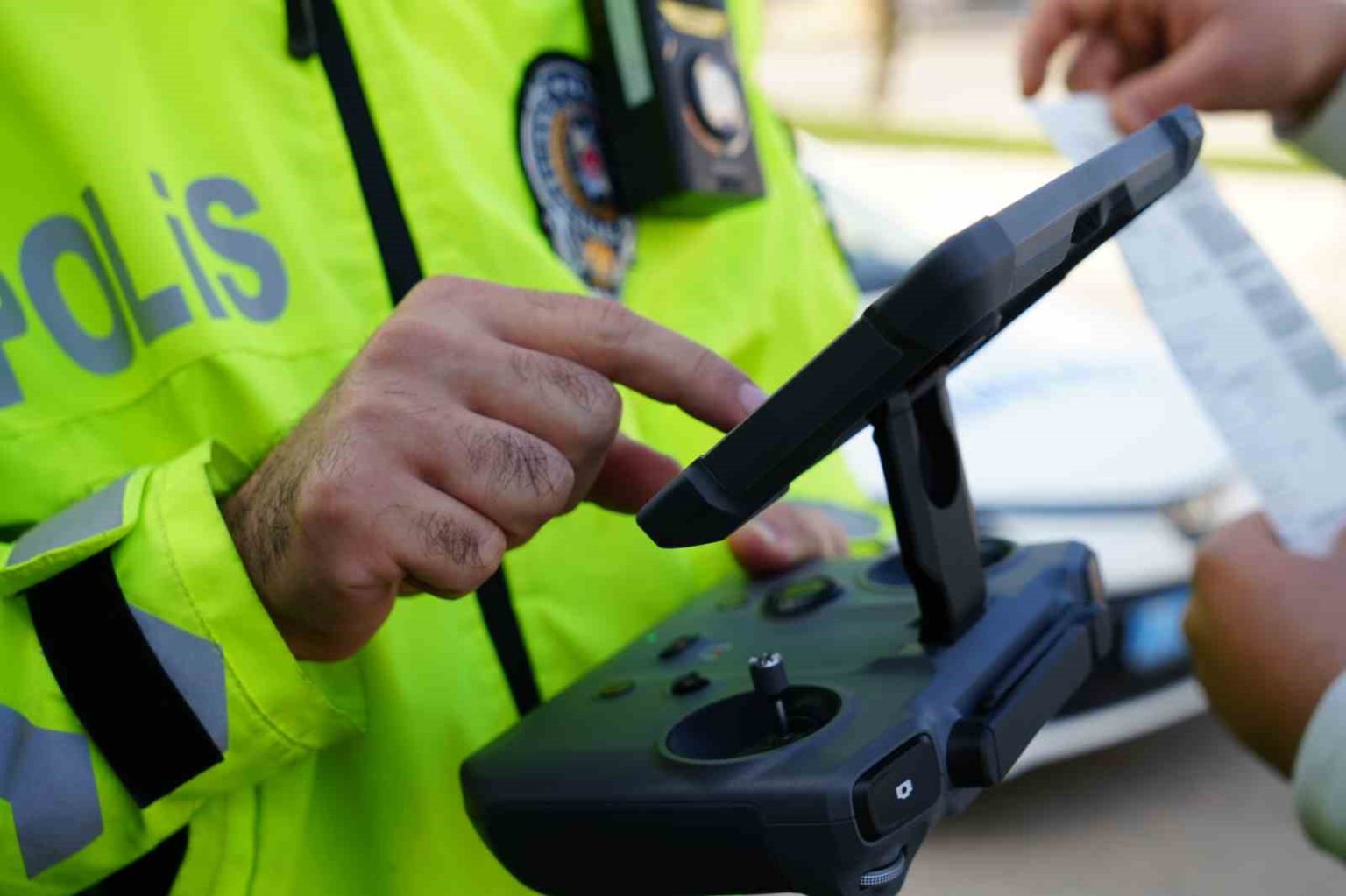 Kırıkkale’de dron destekli trafik denetimlerinde ilginç anlar yaşandı. İl Emniyet Müdürlüğü’ne bağlı trafik ekipleri, Millet Bulvarı’nda dronla denetim gerçekleştirdi. Denetim uyarı levhasını fark eden 17 yaşındaki sürücü Umut Tursun, aracını park ederek yolcu kapısından indi ve ehliyetli bir arkadaşını telefonla aradı. O anlar dron kamerasıyla anbean kaydedildi.