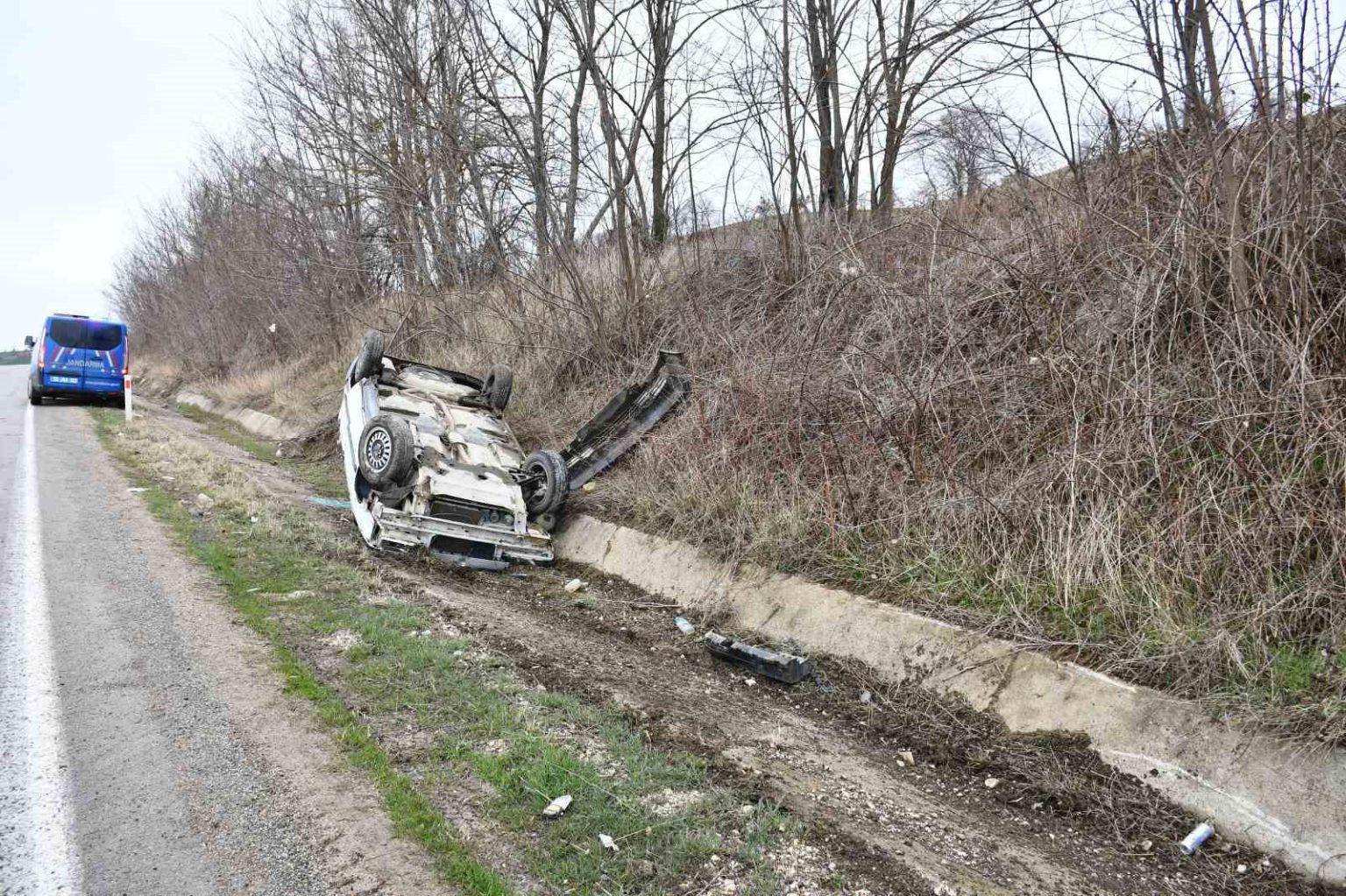 Samsun’un Vezirköprü ilçesinde meydana gelen trafik kazasında bir otomobil yoldan çıkarak takla attı. Sürücü kazayı yara almadan atlattı.