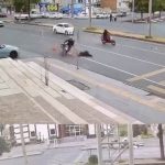 Diyarbakır’da yolun karşısına geçmeye çalışan kadına motosiklet çarpması sonucu 2 kişi yaralanırken, kaza anı güvenlik kamerasına yansıdı.