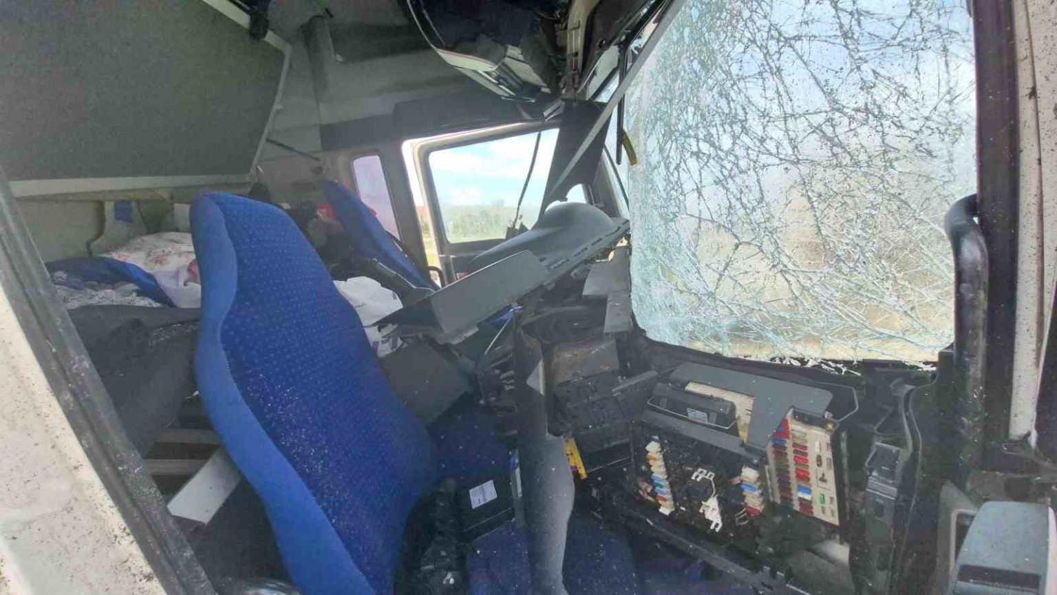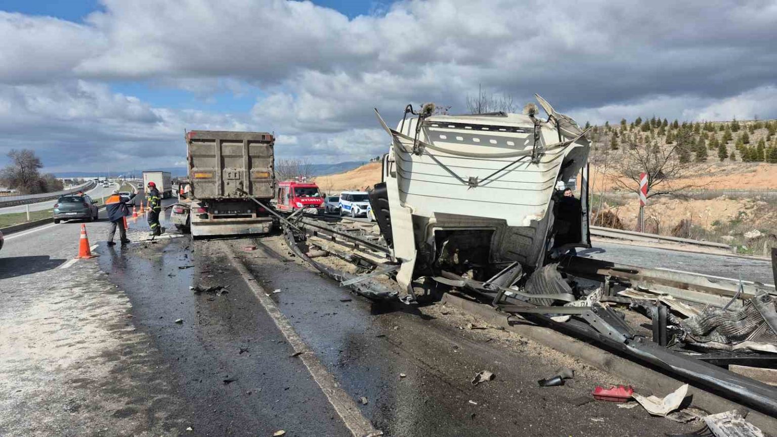 Eskişehir’de kontrolden çıkarak yönlendirme tabelasına çarpan tırın ön kabini koparken, kazayı yaralı olarak atlatan sürücü hastaneye kaldırıldı.
