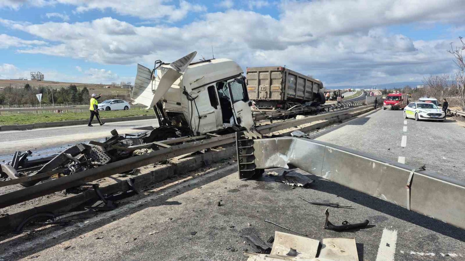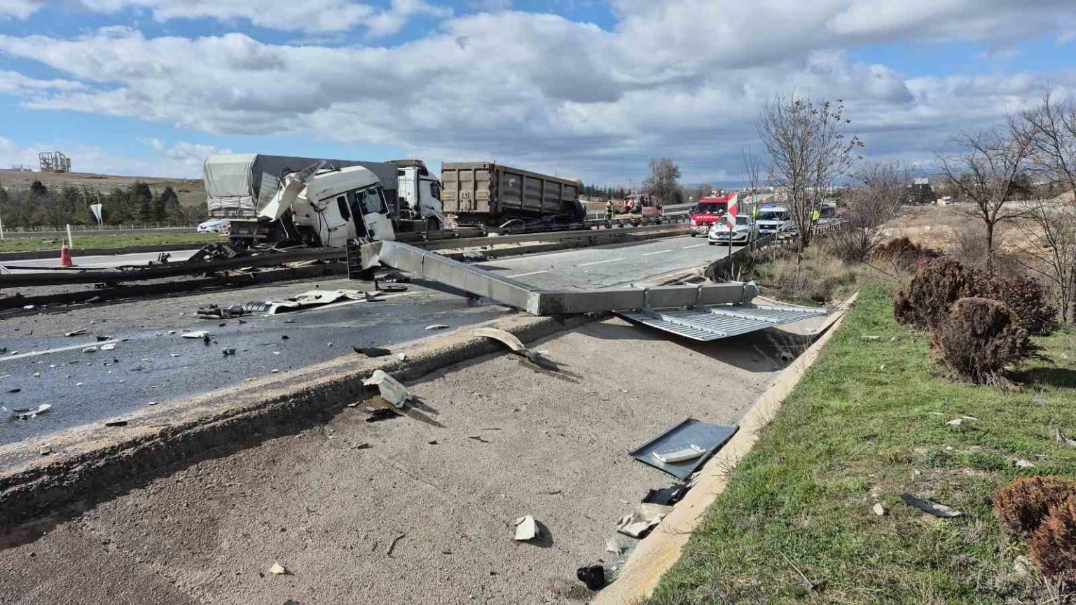 Kaza, saat 13.00 sıralarında Eskişehir-Ankara karayolunda Kanlıpınar mevkinde meydana geldi. Edinilen bilgilere göre; A.Ö. isimli şahsın idaresindeki 06 DA 6348 plakalı kireç yüklü tır, henüz bilinmeyen sebeple sürücüsünün kontrolünden çıkarak yönlendirme tabelasına çarptı. Yerinden kopan tabela tırla birlikte savrulurken, yan taraftaki bariyerlere çarpan aracın ön kabini orta refüje düştü.