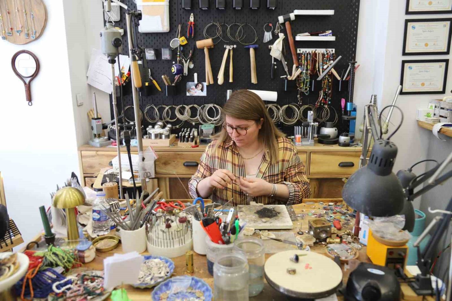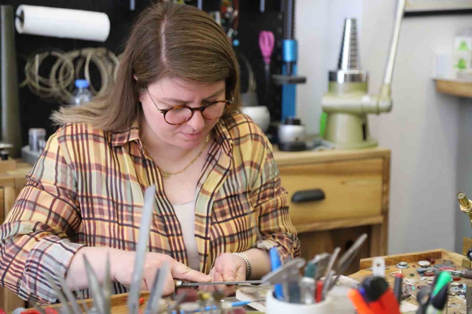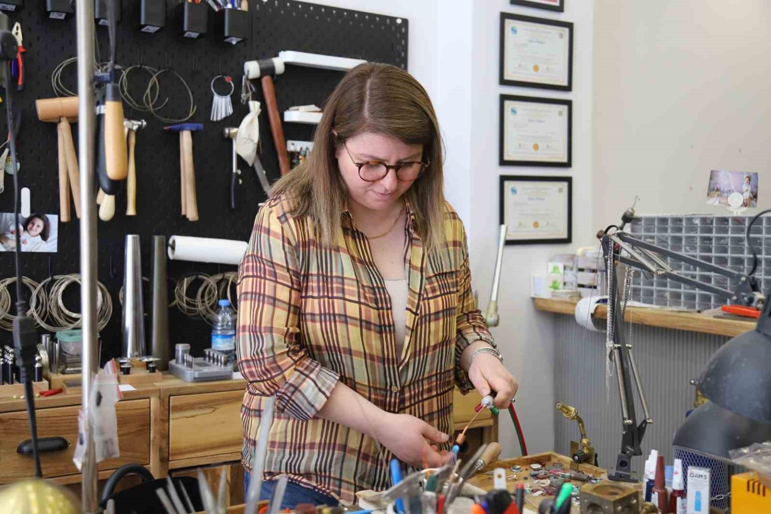 Özellikle kadınların hayalleri noktasında ısrarcı olması gerektiğinin altını çizen Ayşe Işık, “Esin kaynağım çok fazla. Eski şeyleri biriktirmeyi, toplamayı çok severim. Bazen bir kapı kilidi bile bana ilham verebiliyor. Mimari motifler de bunu destekliyor. Yani orayı da es geçmem. Belli bir birikim var ve bunlar bir süre sonra somut olarak dışa vuruyor. Bazen hikâyeler de etkili oluyor. Kızıma kitap okurken orada anlatılan bir tarak, tezgâhın başına geçtiğimde bir anda yüzüğe, kolyeye ya da başka bir takıya dönüşebiliyor. O tezgâhta erkek usta görmeye alışkın insanlar var. Bu yüzden gözleri erkek bir usta arıyor. Eli titreyerek yüzüğü bırakıp gidenler de oldu ama yüzüğü eline alıp o parlaklığı görünce minnettarlığını dile getiren çok insan da var. İnsanların bir kadını tezgâhın başında, elinde çekiçle ya da ateşle görmeye alışması biraz zaman alacak. Özellikle Gümüşhane’de. Radikal bir karar aldım. İstanbul’da yaşarken iki kızımla birlikte Gümüşhane’ye geldim ve hayallerimin peşinden koştum. Bu, hiçbir hazırlık yapmadan sadece hayal kurun demek değil ama ısrarcı olun. Çünkü mutlu olduğunuz yerde üretmek çok daha kolay ve güzel” diye konuştu.