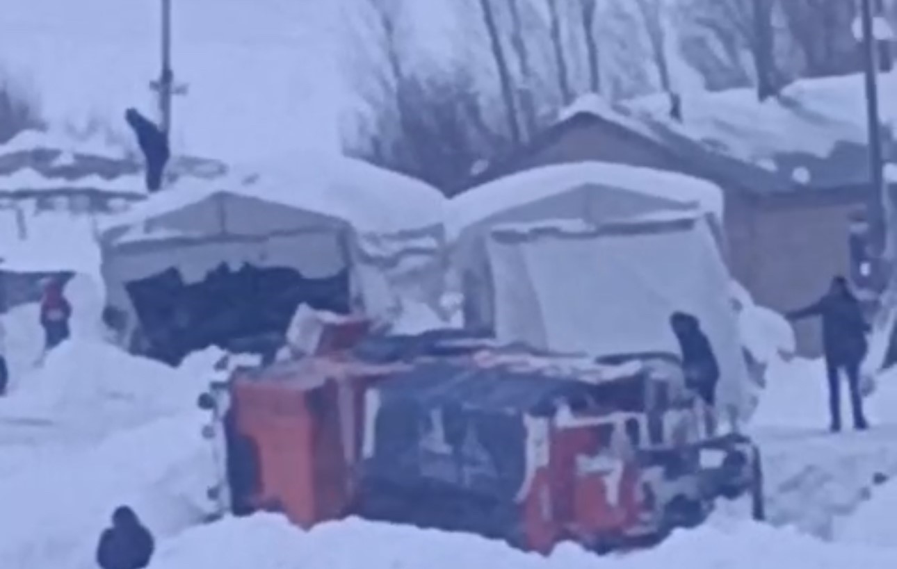 Hakkari’nin Yüksekova ilçesinde karla mücadele aracı, çalışma yaptığı sırada devrildi.