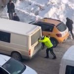 Hakkari’nin Yüksekova ilçesinde buzlu yolda mahsur kalarak ilerleyemeyen kamyoneti, bölgede görevli trafik polisi iterek kurtardı. Vatandaşların da destek verdiği o anlar kameraya yansıdı.