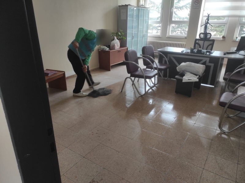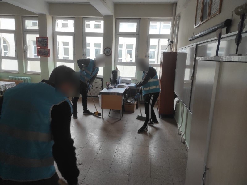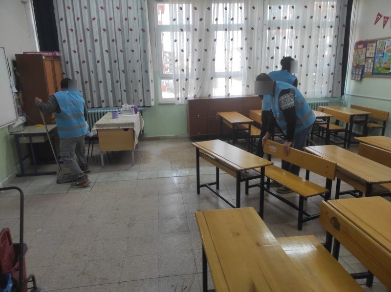 Eskişehir’de ’Kamuya Yararlı Bir İşte Ücretsiz Çalışma Yükümlülüğü’ kapsamında, İsmet İnönü İlkokulu’nda yükümlüler tarafından temizlik çalışması gerçekleştirdi.