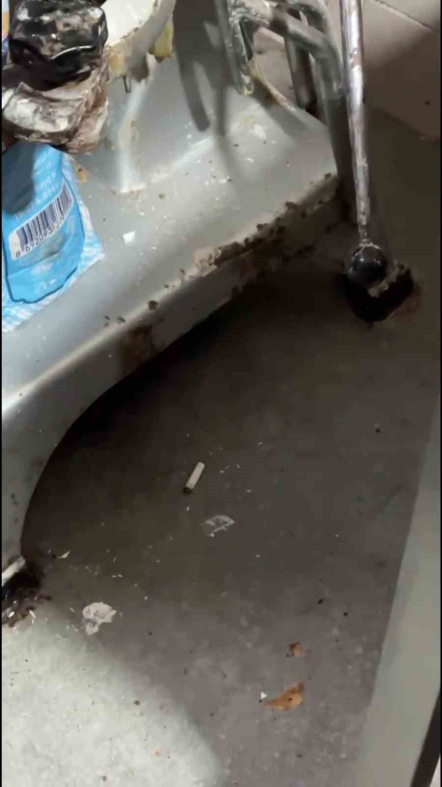 Hatay’da zabıta ekipleri tarafından pastane, tatlı satış ve imalatı yapan iş yerlerine yönelik denetimlerde mide bulandıran görüntüler ortaya çıktı. İş yerlerinde yere atıln sigara izmaritleri, yerlerin silindiği paspasın mutfak tezgahında yıkanması ve kapağı açık bırakılan çöplerse mide bulandırdı.
