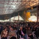 Zeybek oynamak için sahneye çıkan belediye başkanı saniyelerle kurtuldu… Sahnenin çökme anı kamerada
