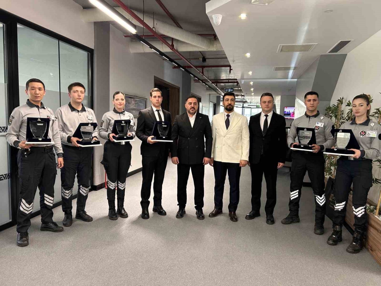 Ali Aydın konuşmasının devamında, “Daha öncelerden özel güvenlik dediğimizde sadece noktada duran ve olay olduktan sonra müdahale eden bir sektördü. Şu an teknolojiyle beraber özel güvenlik sektörünü birleştirdik. Teknolojiyle beraber güvenliği daha ileri seviyeye taşıdık. Bu ne demek olaylar olmadan önce kameralarla, yapay zekayla, otomasyondaki görevli arkadaşlarla özveriyle çalışmasıyla paketin şüpheli olduğu daha önceden tespit edilmişti. Kat malikini aşağıya çağırdık, kat maliki paketi orada açtı. Maalesef olay orada gerçekleşti. Arkadaşlarımıza üstün başarı belgelerini ve maddi desteklerimizi şirket olarak verdik” şeklinde konuştu.