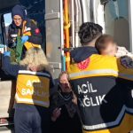 Zincirleme kazada annesi yaralanan bebek 112 görevlisinin kucağında annesini bekledi