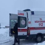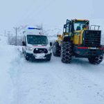 Yoğun kar yağışı ile zorlu yol ve hava şartlarına rağmen ekipler, kapanan yolu kısa sürede ulaşıma açarak sağlık ekiplerinin köye güvenli şekilde ulaşmasını sağladı.