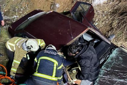 Şarampole devrilen otomobilde iki kişi yaralandı