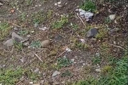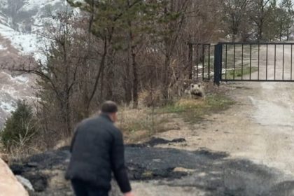 Gümüşhane’de aç kaldığı için köy merkezine yakın bir noktada otlayan ayıyı vatandaşlar…