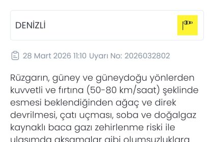 Meteoroloji, Denizli için kuvvetli ve yer yer fırtına şeklinde uyarıda bulunarak olumsuzluklara…