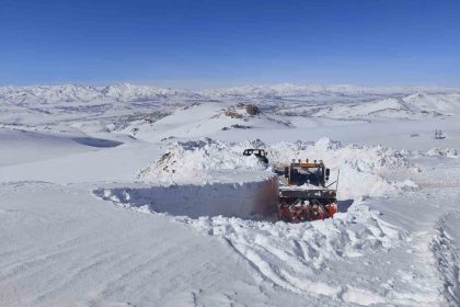 Van’ın Başkale ilçesinde yer yer 3 metreyi bulan kar tünellerinde ekiplerin yol…
