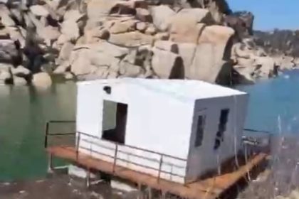 Aydın’da suların yükseldiği Çine Adnan Menderes Barajı’nda sürüklenen konteyner baraka ilginç görüntü…