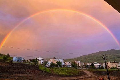 Çermik’te yağmur sonrası oluşan gökkuşağı görsel şölen sundu