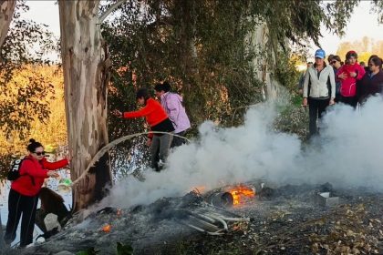Doğaseverler kanal kenarında çıkan yangını söndürdü