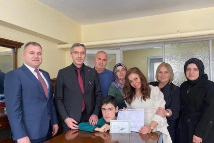 Evde eğitim alan öğrenciler karnelerini Kahraman’dan aldı