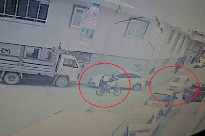 Bursa’nın Nilüfer ilçesinde bisikletli 2 çocuğun otomobille çarpıştığı kaza güvenlik kamerasına saniye…
