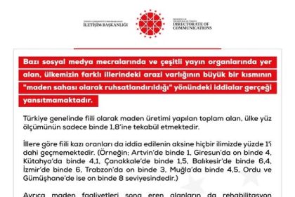 DMM’den Türkiye’deki arazi varlıklarının maden sahası olarak ruhsatlandırıldığı iddialarına yalanlama