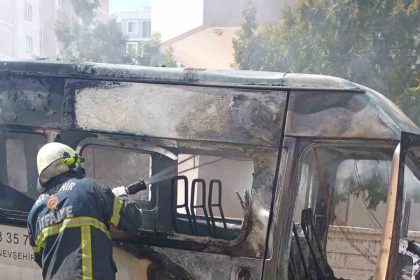 Nevşehir’de park halindeki bir minibüs çıkan yangında küle döndü. Olay, Cevher Dudayev…
