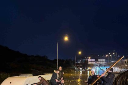 Kuşadası’nda etkili olan sağanak yağışta oluşan sel sularına gömülen minibüste can pazarı…