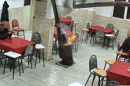 Denizli’de duman tüten sobanın üzerine güzel kokması için kolonya döken işletme sahibi,…