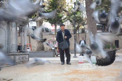 Bilecik’te yaklaşık 2 yıldır Şehitler Parkı’nda inen yaklaşık 300 güvercine bakan Hüseyin…