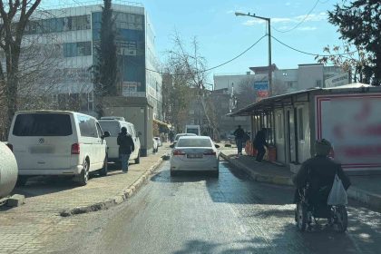 Adıyaman’da, kaldırım üzerine park edilen araçlardan dolayı engelli vatandaşlar, araçların arasından ilerlemek…