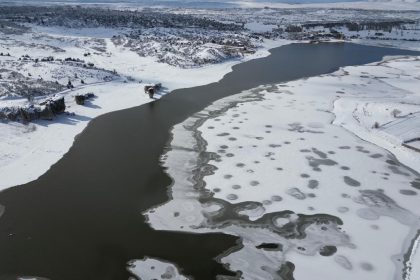 Hava sıcaklıklarının sıfır derecelerin altına düştüğü Afyonkarahisar’da donan Emre Gölü yanı başındaki…