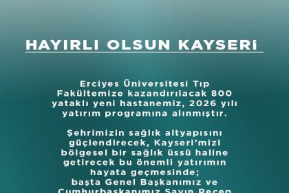 AK Parti Kayseri İl Başkanı Hüseyin Okandan, Erciyes Üniversitesi Tıp Fakültesi’ne kazandırılacak…