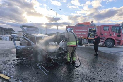 Seyir halindeyken yanmaya başlayan otomobil alevlere teslim oldu