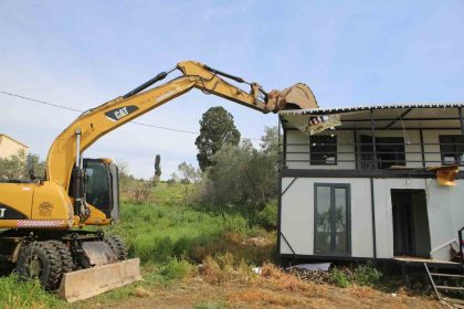 Adana’nın Sarıçam ilçesinde tarım arazileri üzerine yapılan kaçak yapılarla ilgili yıkım sırasında…