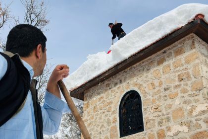 Tarihi miras onlara emanet: Muhtar ve imamdan örnek kar mesaisi