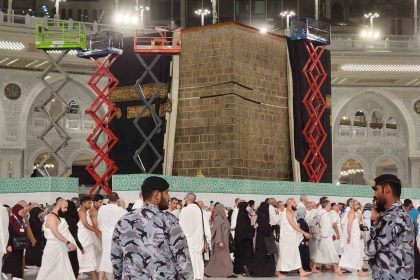MEKKE (İHA) – Kabe’i Muazzamı’nın dış duvarları, ipek örtü kaldırılarak bakıma alındı.…