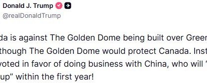 Trump’tan Kanada’ya Grönland tepkisi: “Altın Kubbe’ye karşı çıkarken, Çin ile iş yapmayı tercih ettiler”