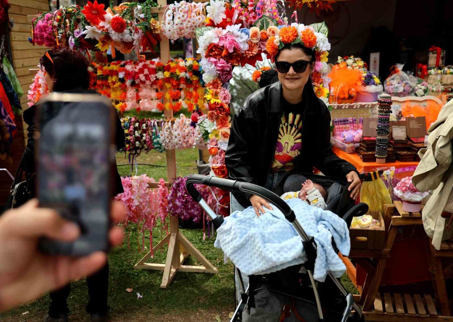 Parklarındaki stantları ziyaretçiler gezerken katılımcılar, başlarına portakal çiçeği taçları takarak hatıra fotoğrafı çektirdi. Karnaval renkli görüntülere sahne oldu.