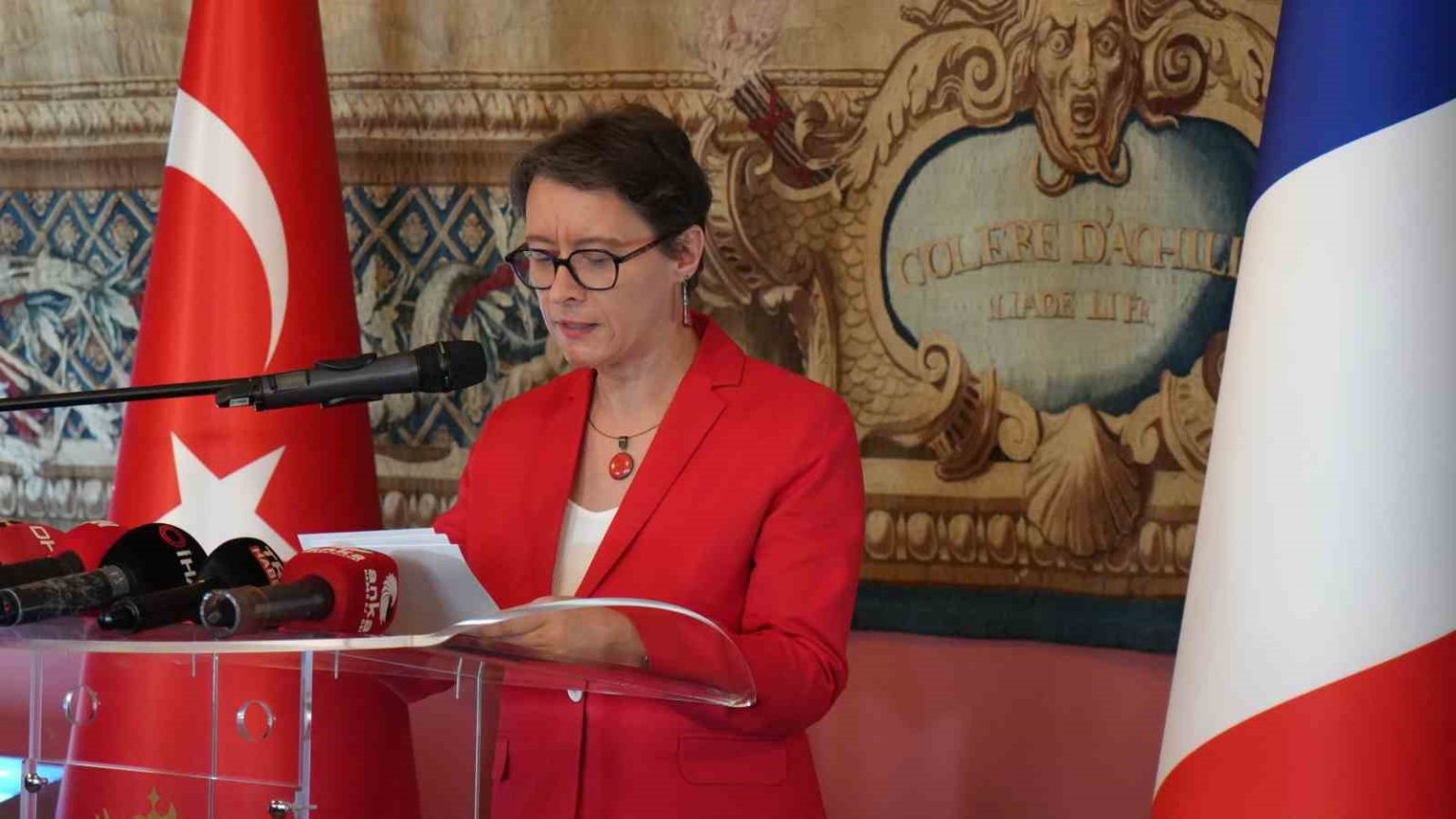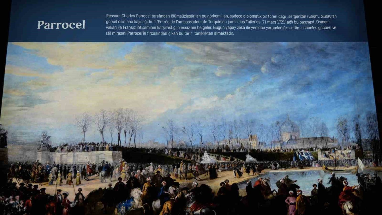Fransa’nın Türkiye Büyükelçiliği konutunda davetlileri ağırlamaktan son derece büyük bir mutluluk duyduğunu kaydeden Fransa’nın Türkiye Büyükelçisi Isabelle Dumont, “Bu akşam, itiraf etmeliyim ki, son derece büyüleyici bir o kadar da müstebat bir proje münasebetiyle bir araya gelmiş bulunuyoruz. Her şey, Fransa Kralı 15. Louis’nin sarayı nezdinde Osmanlı Devleti’nin ilk olağanüstü Büyükelçisi olarak atanan Mehmed Çelebi Efendi’nin, Sefaretnâme adlı eserinde, bizlere miras olarak bıraktığı müstesna hatıratıyla başlamıştır. 1720 yılında Fransa ve Paris’e dair ayrıntılı, yer yer hayretamiz tasvirlerin yer aldığı bu önemli eser paha biçilmez değerdedir. Buradan hareketle, birbirine tamamen zıt iki devir olan Mehmed Çelebi Efendi’nin 18. yüzyılı ile yapay zeka çağı arasında bir diyalog oluşturmak istedik. Kavram basit ama cüretkar. Yapay zekadan Mehmed Çelebi Efendi’nin betimlemelerini görsellere dönüştürmelerini istemek. Bunun için yapay zekadan, Osmanlı elçisinin Paris’teki Tuileries Bahçesi’ne giriş sahnesini ölümsüzleştiren ve bugün Versailles’da sergilenen şaheserin sahibi Charles Parrocel’in üslubunu taklit etmesi talep edilmiştir. Bu akşam sergilenen eserler arasında bu tablonun bir nüshasını da göreceksiniz” diye konuştu.