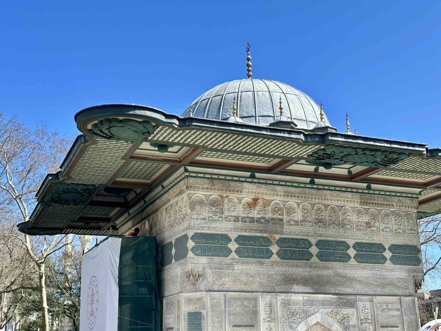 İstanbul’un önemli tarihi eserlerinden biri olan Tophane Çeşmesi’nde ısınmak amacıyla yakılan ateş sonucu oluşan is ve kurum izlerinin temizlenmesi için çalışma başlatıldı.