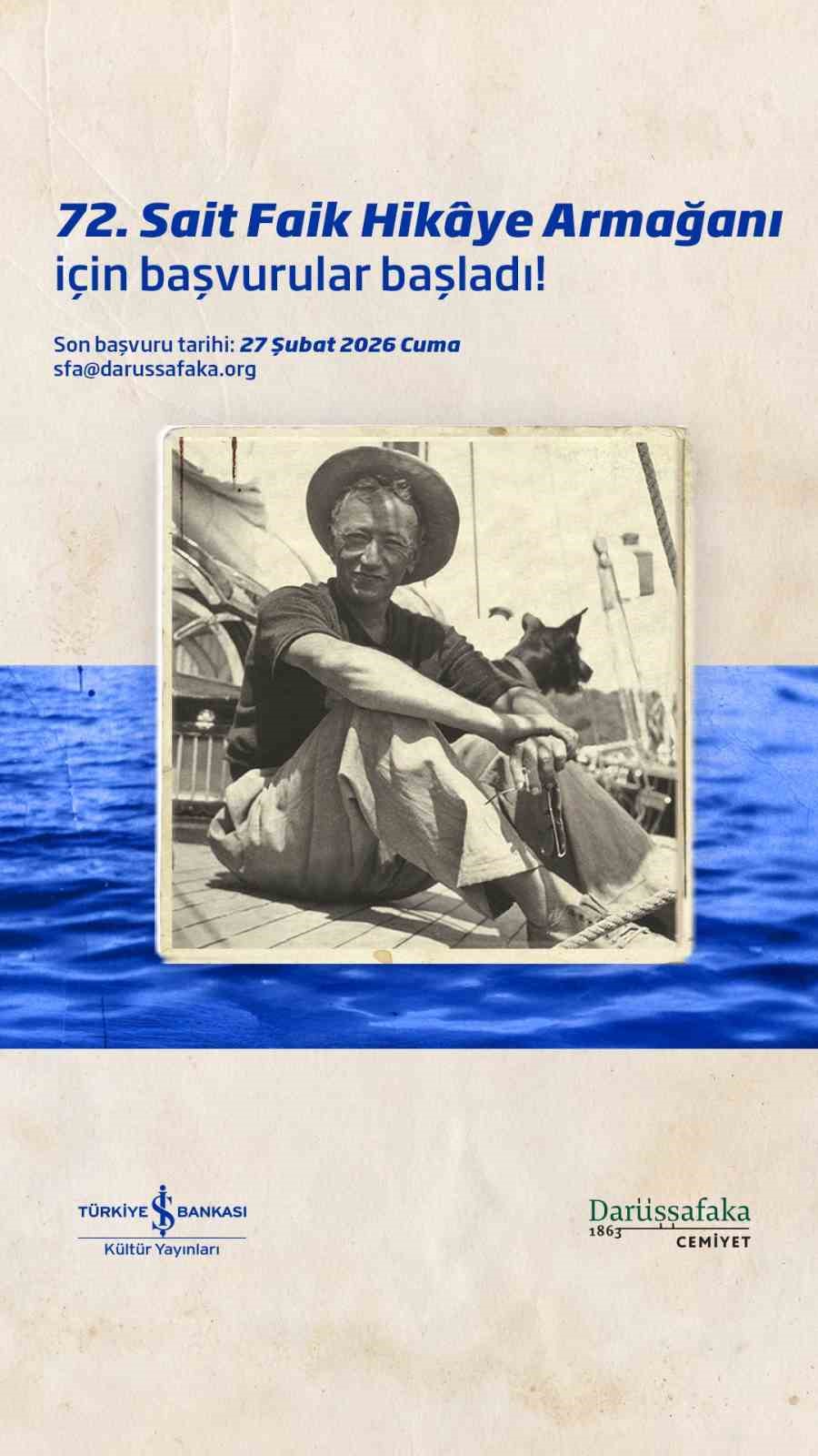 Usta yazar Sait Faik Abasıyanık’ın anısını yaşatmak adına her yıl bir öykücüye verilen ve Darüşşafaka Cemiyeti, Türkiye İş Bankası ve Kültür Yayınları’nın iş birliğiyle düzenlenen 72. Sait Faik Hikâye Armağanı’na başvurular başladı.