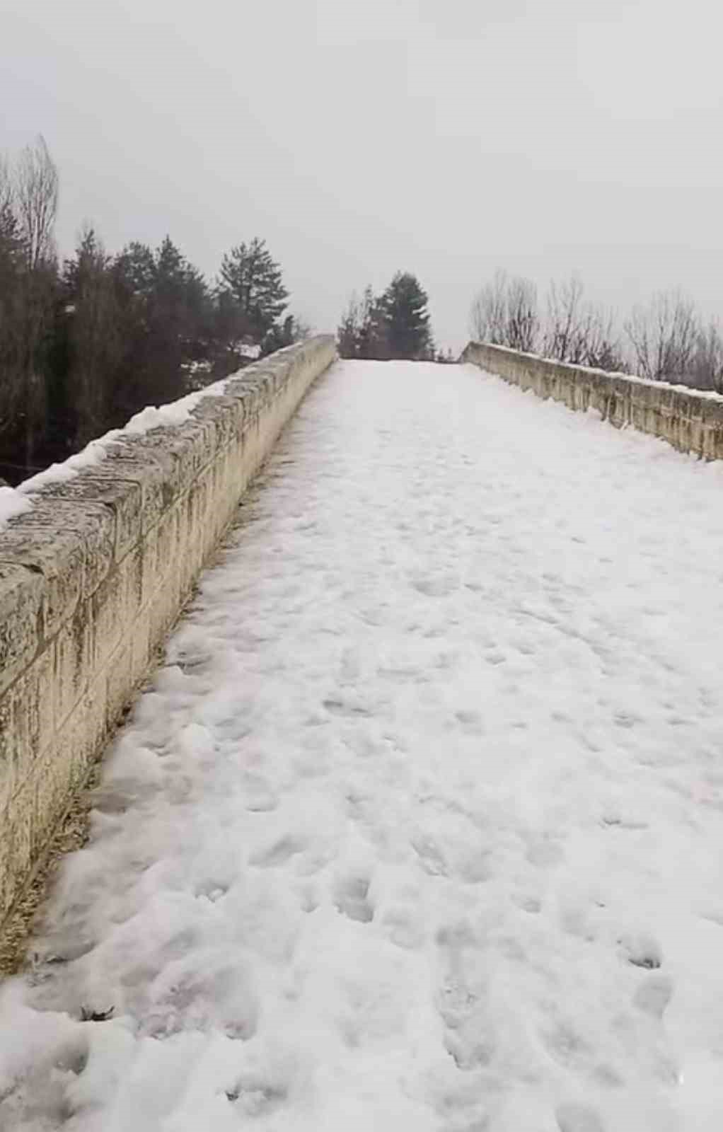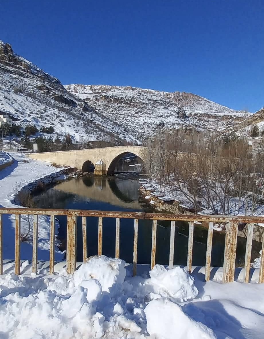 Diyarbakır’ın Çermik ilçesinde bulunan Artuklu eseri tarihi Haburman Köprüsü, ilk günkü ihtişamı ile ayakta durmaya devam ediyor. Yaklaşık 850 yıllık tarihi köprü, karla birlikte seyrine doyumsuz manzara oluşturdu.