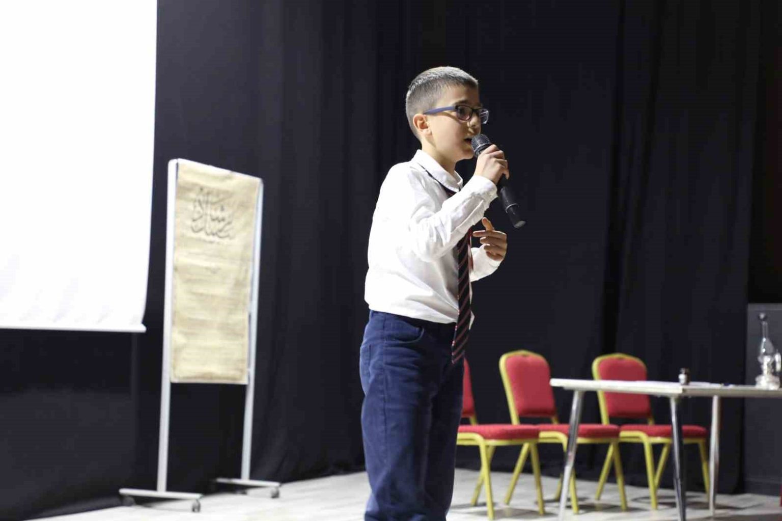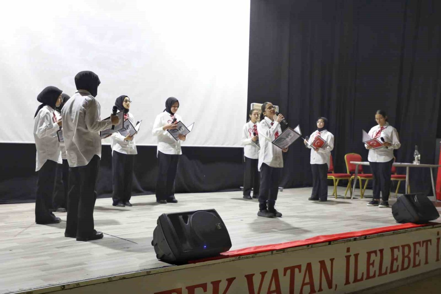 Ağrı İl Milli Eğitim Müdürlüğünün koordinesinde Şinasi Ünsal Kız Anadolu İmam Hatip Lisesi tarafından Kültür ve Kongre Merkezi’nde düzenlenen program, saygı duruşu ve İstiklal Marşı’nın okunmasıyla başladı.