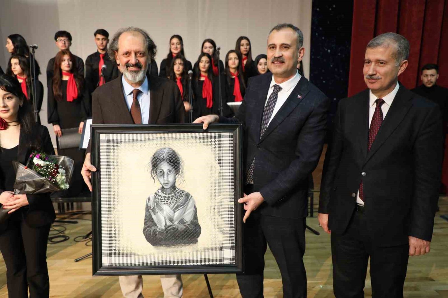 Konuşmaların ardından, koordinatörlüğünü Yücel Arzen Hacıoğulları’nın üstlendiği programda, Erol Parlak Güzel Sanatlar Lisesi öğrencilerinden oluşan koro çeşitli eserler seslendirdi. Hacıoğulları da sahnede seslendirdiği eserlere öğrenciler ve izleyiciler eşlik etti.
